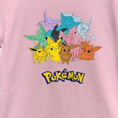 Gotta catch 'em all! Get into the fun with the iconic world of Pokemon cards, video games, TV shows, and more with adorable new officially licensed apparel for the whole family featuring all your favorite Pokemon! This Girls' Pokemon Pikachu and Eeveelutions Logo Graphic T-Shirt features Pikachu, and all Eeveelutions: Sylveon, Espeon, Glaceon, Flareon, Leafeon, Jolteon, Umbreon, and Vaporeon. Grab one of these new Pokémon tees today and be the envy of all your friends!