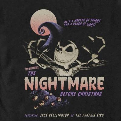 Make your way down to Halloweentown for some frighteningly good times with the Pumpkin King of Halloweentown himself, Jack Skellington, with new officially licensed apparel for the whole family from Disney's beloved film The Nightmare Before Christmas! This Men's Jack Retro Movie Poster Graphic T-Shirt features Jack getting ready to terrify humans and the phrase "He’s a Master of Fright and a Demon of Light" in purple above him. Grab one of these new styles today and represent your favorite Disney movie!