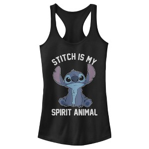 • Strut your stuff with this stylish new everyday Juniors' Racerback Tank Top that is perfect for every occasion! Featuring Stitch sitting down across the center framed by the text "Stitch Is My Spirit Animal."