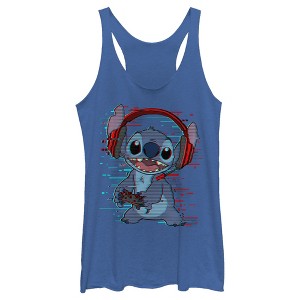 Women's Lilo & Stitch Red and Blue Gamer Racerback Tank Top - Royal Blue Heather - Small
