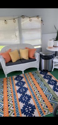 [This review was collected as part of a promotion.] I absolutely love this rug. It looks great on my deck making it welcoming and bright. I ordered a second rug for the other side of my deck. The vibrant colors are beautiful and it is very easy to clean.