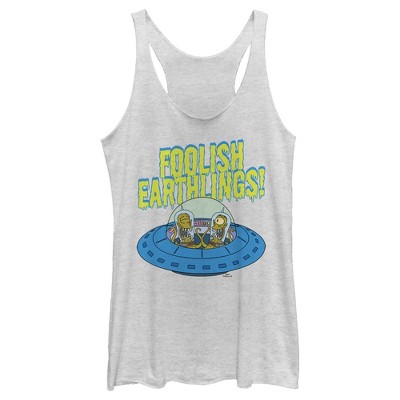 • Strut your stuff with this stylish new Halloween men's tank top that is perfect for the Scary season! Featuring Kang and Kodos laughing inside their colorful spaceship with the phrase "Foolish Earthlings!" printed above them in slime font.