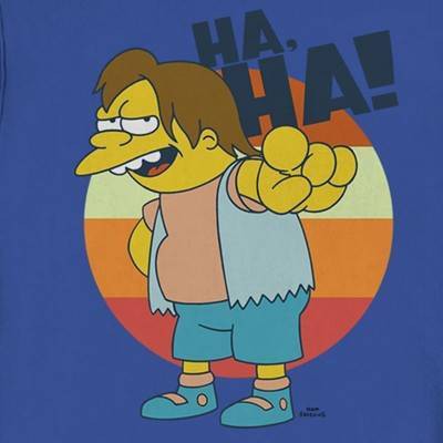 Mhmmm donuts… mhmm officially licensed The Simpsons styles. Show off your favorite animated series with hilarious officially licensed apparel for the whole family featuring everyone's favorite dysfunctional family! This Men's The Simpsons Nelson Laugh Graphic Crewneck Sweatshirt features Nelson finger-pointing and laughing with his iconic "Ha, Ha!" written in navy bold lettering. If anyone tries to steal your fashion, then just tell them to "eat my shorts" because you're not giving up this classic style from The Simpsons!