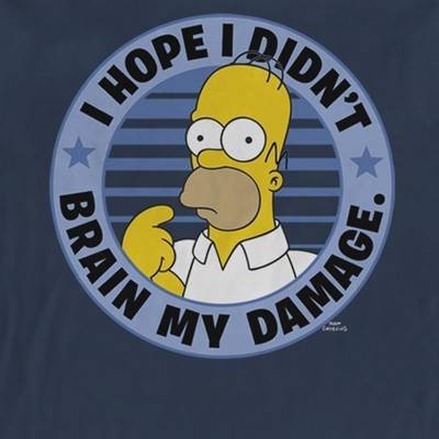 Mhmmm donuts… mhmm officially licensed The Simpsons styles. Show off your favorite animated series with hilarious officially licensed apparel for the whole family featuring everyone's favorite dysfunctional family! This Men's The Simpsons Brain My Damage Graphic Long-Sleeve T-Shirt features Homer pointing at himself encircled by the text "I Hope I Didn't Brain My Damage." If anyone tries to steal your fashion, then just tell them to "eat my shorts" because you're not giving up this classic style from The Simpsons!