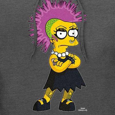 Mhmmm donuts… mhmm officially licensed The Simpsons styles. Show off your favorite animated series with hilarious officially licensed apparel for this season featuring everyone's favorite dysfunctional family! This Men's The Simpsons Punk Lisa Graphic Pullover Hoodie features Lisa Simpson wearing a black dress, piercings, tattoos, purple punk hair, and heavy dark eye makeup. If anyone tries to steal your fashion this Halloween, then just tell them to "eat my shorts" because you're not giving up this classic style from The Simpsons!
