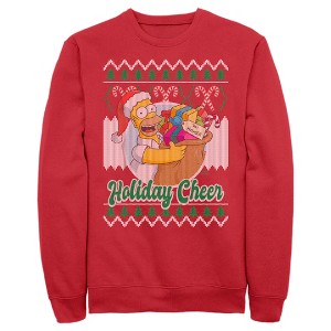 Mhmmm donuts… mhmm officially licensed The Simpsons styles. Show off your favorite animated series with hilarious holiday-themed officially licensed apparel for the whole family featuring everyone's favorite dysfunctional family! This festive Men's The Simpsons Christmas Homer Holiday Cheer Sweater Print Graphic Crewneck Sweatshirt features Homer Simpson wearing a Santa hat and holding a bag full of gifts with "Holiday Cheer" below him and an ugly sweater design in the background. If anyone tries to steal your fashion, then just tell them to "eat my shorts" because you're not giving up this classic style from The Simpsons!