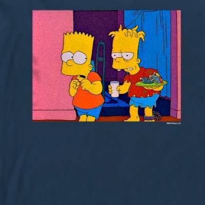 Mhmmm donuts… mhmm officially licensed The Simpsons styles. Show off your favorite animated series with hilarious officially licensed apparel for this season featuring everyone's favorite dysfunctional family! This Men's The Simpsons Treehouse of Horror Double Bart Scene Graphic Long-Sleeve T-Shirt features Bart getting scared by his evil twin. If anyone tries to steal your fashion this Halloween, then just tell them to "eat my shorts" because you're not giving up this classic style from The Simpsons!