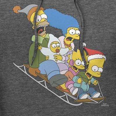 Mhmmm donuts… mhmm officially licensed The Simpsons styles. Show off your favorite animated series with hilarious holiday-themed officially licensed apparel for the whole family featuring everyone's favorite dysfunctional family! This festive Men's The Simpsons Distressed Family Gone Sledding Graphic Pullover Hoodie features the Simpson family, Homer, Marge, Bart, Lisa, and Maggie Simpson, sledding across the front. If anyone tries to steal your fashion, then just tell them to "eat my shorts" because you're not giving up this classic style from The Simpsons!