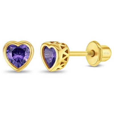 Baby Girls' Bezel Set Solitaire Screw Back Sterling Silver Earrings - Purple - In Season Jewelry