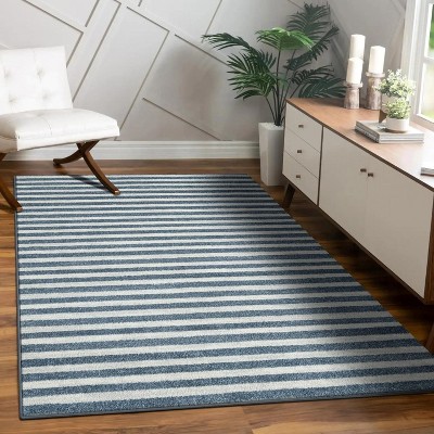 At least 6" of rug should be showing on all sides