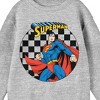 Superman Character with Logo and Checkered Background Youth Heather Gray Crew Neck Sweatshirt - 2 of 2