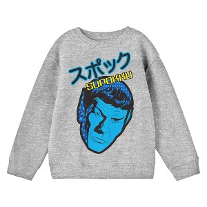 Star Trek Spock Supokku with Kanji Text Youth Athletic Heather Crew Neck Sweatshirt - 1 of 2
