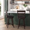 Merrick Lane 24" Espresso Classic Wooden Ladderback Swivel Counter Height Stool with Black Faux Leather Padded Seat and Integrated Footrest