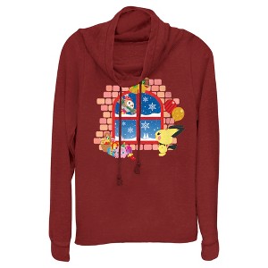Juniors Womens Pokemon Christmas Window Cowl Neck Sweatshirt - 1 of 3