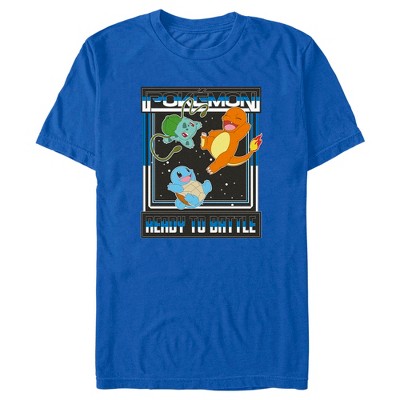 • Strut your stuff with this stylish new men's t-shirt that is perfect for every occasion! Featuring Bulbasaur, Charmander, and Squirtle in a cool, retro gamer grid with "Ready to Battle" printed below.