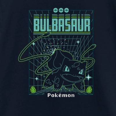 Girl's Pokemon Bulbasaur Retro Grid T-Shirt - Navy Blue - X Large