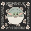 When your Mandalorian armor is at the cleaners, give this officially licensed Star Wars: The Mandalorian Grogu Precious Daisies Men's T-Shirt a try instead! Take up the reins as a Mandalorian gunfighter exploring the galaxy. This awesome Star Wars tee features Grogu, the cute green baby alien in his pod with the word: "Precious," making a frame around him along with daises. Celebrate the Star Wars-inspired television series, The Mandalorian with this fun tee today!