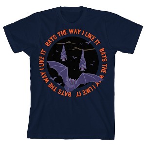 Kids Halloween Bats the Way I Like It Unisex Youth Navy Blue Short Sleeve Crew Neck Tee - 1 of 4