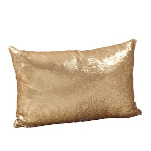 Saro Lifestyle Reversible Sequin Mermaid Poly Filled Throw Pillow, Champagne, 16" x 24"