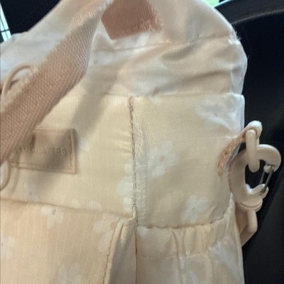 I love my water bottle tote! I has space for my phone, mints, small coin purse, pens/pencils and of course my water bottle. The pale pink and white flowered tote is subtle and pretty at the same time. The tote replaced a waterbottle sleeve I had gotten elsewhere because the bottle slipped through it. The tote has a bottom to it and is insulated which will be great for plastic bottles or cups. The short handles are great ffor a quick grab and carry. And the adjustable crossbody straps are wonderful for long walks and hikes. This is better that anything I could have imagined or designed myself.