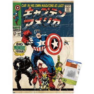 Trends International Marvel Katakana - Captain America #100 Unframed Wall Poster Print Clear Push Pins Bundle 14.725" x 22.375"