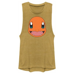 Juniors Womens Pokemon Charmander Smile Festival Muscle Tee - Gold Heather - X Small
