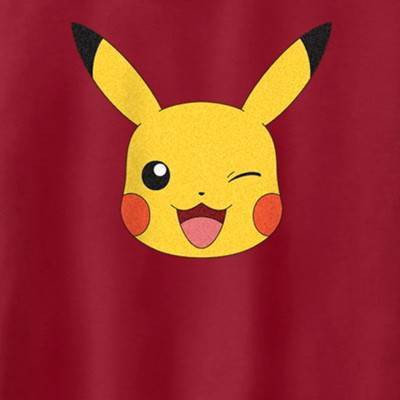 • A: The tank top features a large graphic of Pikachu's adorable winking face printed on the front.