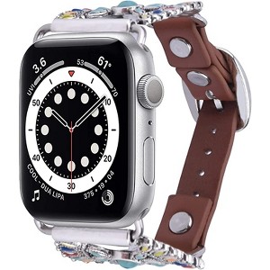Worryfree Gadgets Leather & Metal Band for Apple Watch 38/40/41mm, 42/44/45mm iWatch Band Series 8 7 6 SE 5 4 3 2 1 - 42/44/45mm - Genuine Leather #6
