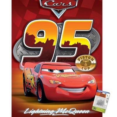 Trends International Disney Pixar Cars (2006) - Lightning Unframed Wall Poster Print Clear Push Pins Bundle 22.375" x 34"