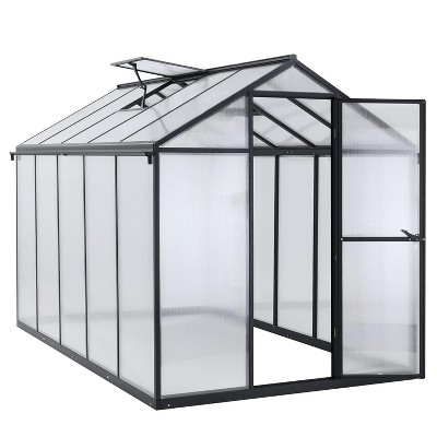 Outsunny Walk-In Garden Greenhouse Aluminum Polycarbonate with Roof Vent for Plants Herbs Vegetables