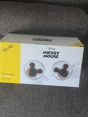 JoyJolt Disney Mickey Mouse 3D Coffee Tea Mugs - Set of 2 Double Wall Glass Coffee Cups - 10 oz