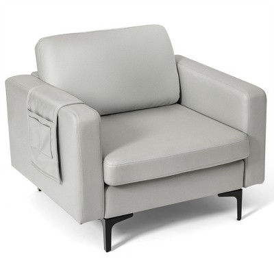Great looking chair. BUT, it only looks like leather. I expected it to be made of something like vinyl, something with a smooth surface similar leather. It does not. It is made of some sort of woven fabric that reminds me of cheap children's pajamas back in the 70's. (I'm 53 years old.) Also, the arms are curved with a strong metal pipe, if you squeeze them it seems like it's constructed like a rolling desk chair seat. Strong arms to lean on, but the filling inside the arms feels like cardboard and thin padding. Speaking of thin padding...the chair seat is thinly padded. Not comfortable. And the seat itself is very narrow. If you are a little fuller in the hip area, you will feel limited in space. If you are built narrow, like sitting on hard surfaces, and don't mind itchy fabric it may work for you.