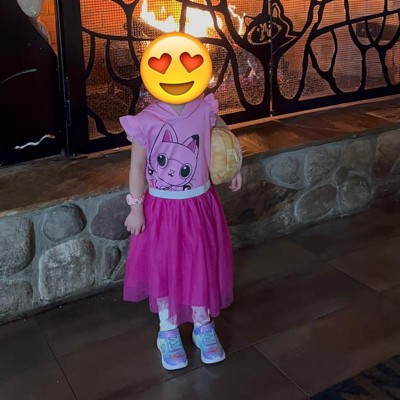 My daughter saw this online while we were browsing for her birthday dress. She loves Gabby’s Dollhouse; it's a really cute dress, and kids keep telling her how much they love it.