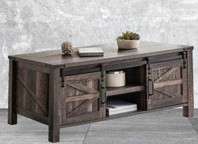 Upgrade your home and display your style with ease using the Farmhouse 48-Inch Coffee Table with Sliding Barn Doors.