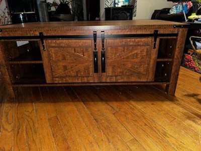 [This review was collected as part of a promotion.] My husband and I loved the looks of this Farmhouse 48 Inch Coffee Table with Sliding Barn Doors as soon as we saw it. It's very easy to put together and is very durable. The doors slide so easily that our cat will even open them and hide inside. The functionality and modern looks are great and the finish on the whole table is very nice. It's a little heavy but that's good because it's sturdy. You'll love it too