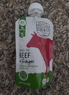 Serenity Kids Grass Fed Beef and Ginger with Organic Pea, Bell Pepper & Broccoli Baby Food Pouch - 3.5oz: 6 Months and Up, 2nd Stage