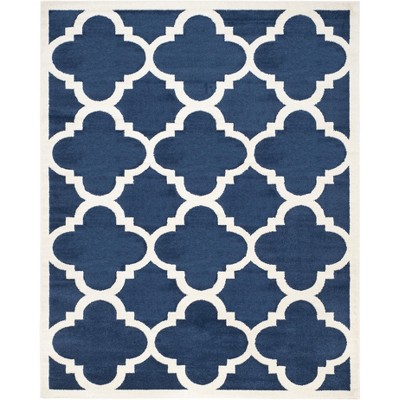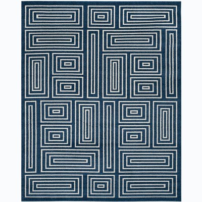 Elevate your living space with this exquisite 9' X 12' area rug, featuring a striking blue and cr?me geometric pattern that brings a modern twist to classic elegance. Crafted in Turkey, the large rectangular rug boasts a comfortable 3/8" height and is meticulously constructed via power-loomed techniques. Its durable composition of 67% polypropylene, 18% fibrillated polypropylene, 8% latex, and 7% poly-cotton(warp) ensures longevity and easy maintenance, perfect for high-traffic areas. OEKO-TEX certification guarantees that it's free from harmful substances, making it a safe choice for your home. Embrace style, quality, and peace of mind with this captivating accent piece.