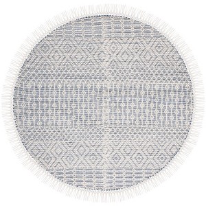 Natura W/ Fringes NAT852 Hand Loomed Indoor Area Rug - Ivory/Blue - 6' Round - Safavieh