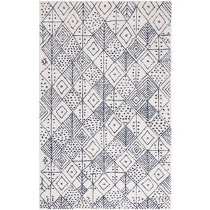 Elevate your living space with our hand tufted area rug, crafted in India. Measuring 4 feet by 6 feet, this small rectangle rug fits perfectly in any room. Its height of one-half inch adds a subtle layer of comfort underfoot. The ivory and blue color palette complements a variety of decor styles, while the bohemian design brings a touch of global charm to your home. Made from 80 percent wool and 20 percent cotton, this rug balances vibrant aesthetics with natural materials. The geometric pattern introduces visual interest and can serve as a striking focal point or a harmonious backdrop. Add warmth and texture to your space with this unique and artful rug.
