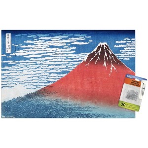 Trends International Fine Wind, Clear Morning by Katsushika Hokusai Unframed Wall Poster Print Clear Push Pins Bundle 14.725" x 22.375"
