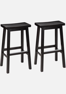 PJ Wood Classic Saddle-Seat 24" Tall Kitchen Counter Stools, Black, (Set of 2)