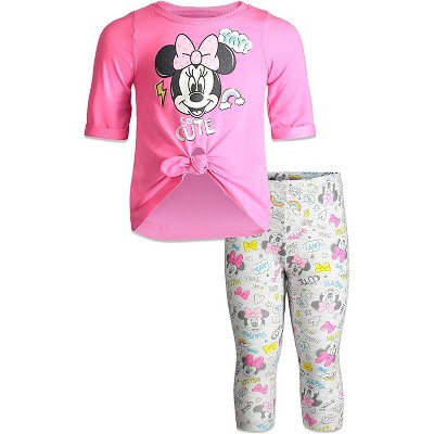 Dress your little one in adorable Disney style with this Minnie Mouse t-shirt and leggings outfit set. Available in sizes for infants to big kids, this cute ensemble features a graphic tee with everyone's favorite mouse and coordinating leggings for a complete look. Perfect for a day at the park or playdates with friends, this outfit is sure to bring smiles and comfort to your child. Get your hands on this charming set today for a magical addition to your child's wardrobe.