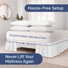 The ruffled elastic wrap around bed skirt is a stylish and practical addition to any bedroom. Made from high-quality fabric, it features a 12-inch drop that effectively conceals under-bed storage while adding elegance to the decor. Guests appreciate its easy installation, adjustable fit, and durability, making it a convenient choice for those looking to enhance their bedding without the hassle of traditional bed skirts. Its machine-washable nature adds to its appeal, ensuring it remains fresh and clean with minimal effort.