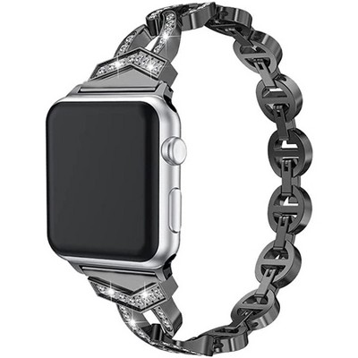 Worryfree Gadgets Metal Bling Band Compatible w/ Apple Watch Band Stainless Steel with Crystals iWatch Series 8 7 6 SE 5 4 3 2 1 - 38/40/41mm - Black