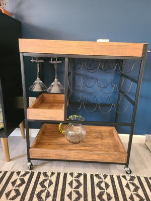 12 Bottle Rustic Walnut Wood and Metal Rolling Farmhouse Style Bar Cart Brown/Black - Danya B.