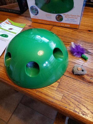 [This review was collected as part of a promotion.] My cats have spent hours and hours playing with their new pop and play cat toy. With interchangeable toys that pop out from different holes it makes it the perfect toy. They can switch from feather to mouse and never get tired of play time.
