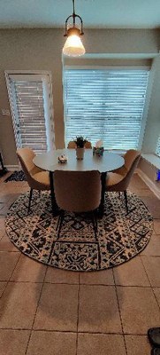 Love the aesthetics and weave! The weave can loosen up so make sure the chairs' legs have sliders/protectors if used with the dining table.