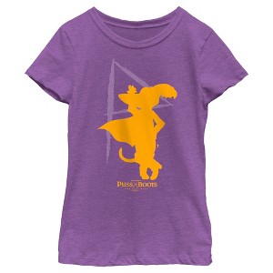 Girl's Puss in Boots: The Last Wish Yellow Silhouette T-Shirt - Purple Berry - Medium