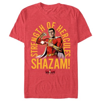 • Strut your stuff with this stylish new girls' t-shirt that is perfect for every occasion! Featuring Shazam surrounded by text that says "Strength Of Hercules" in yellow lettering.