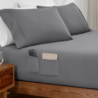 22 Inch Extra Deep Pocket Ultra Soft Easy Care Fitted Sheet by Bare Home - Full, Light Grey